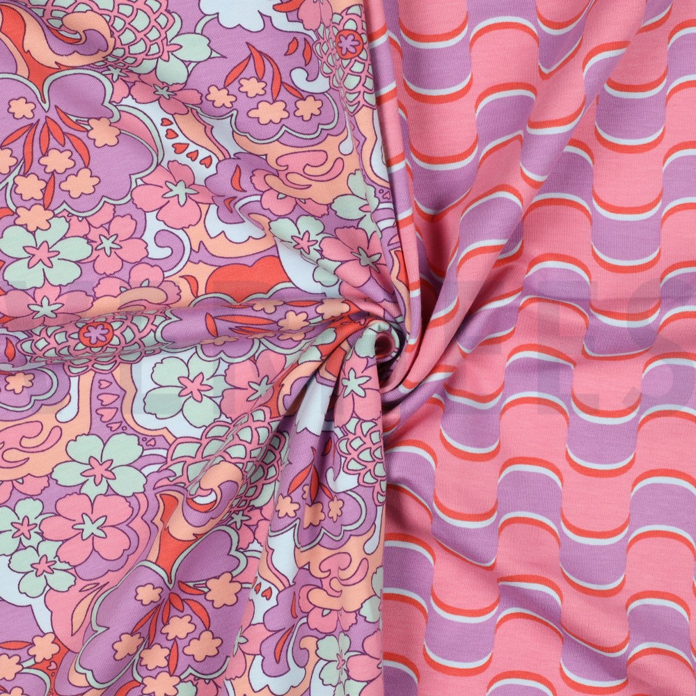 V03105.003 FRENCH TERRY ABSTRACT FLOWERS PINK
