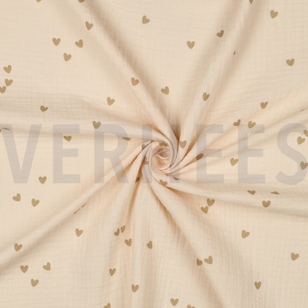 V03166.032 DOUBLE GAUZE SMALL HEARTS SAND - 100%CO