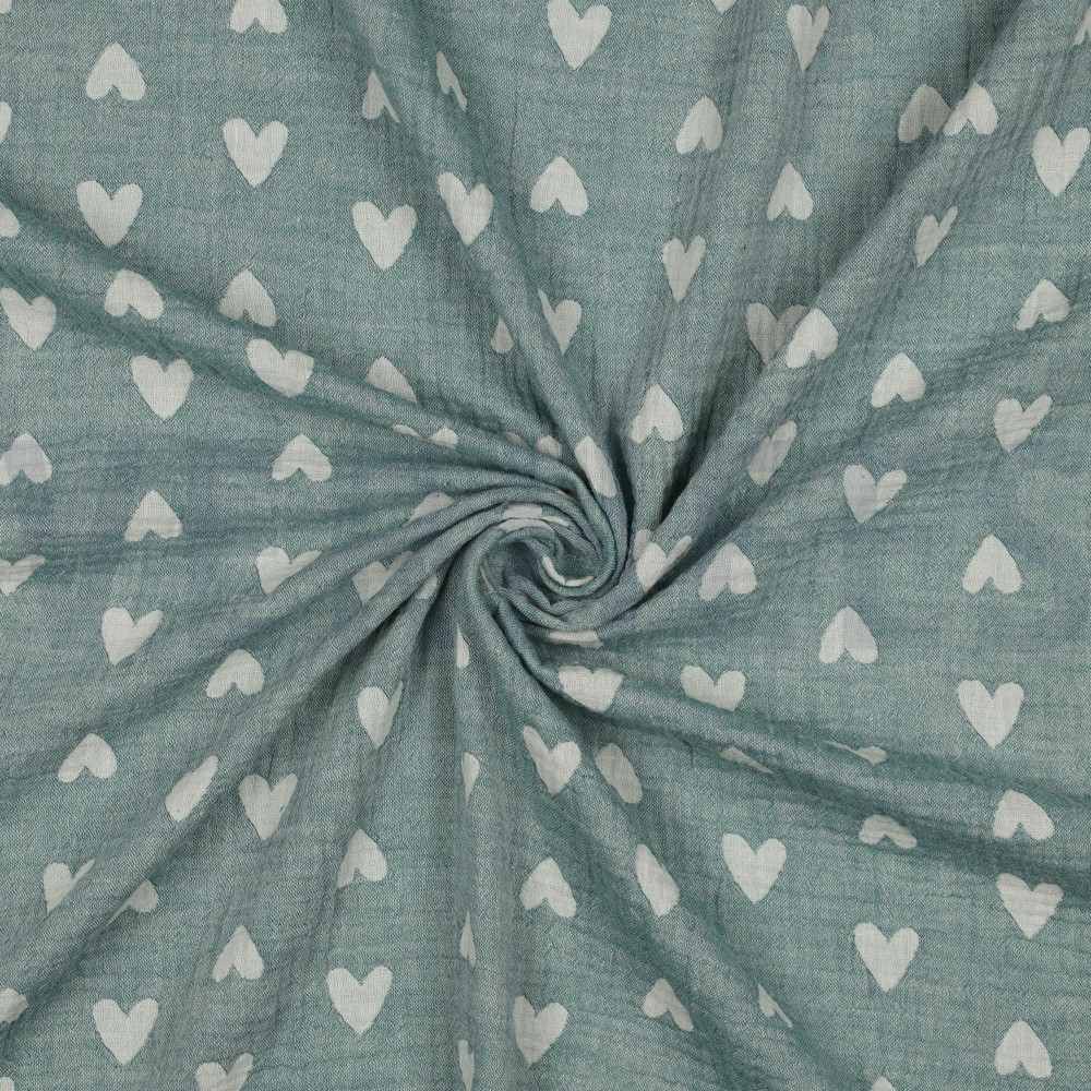 V03561.002 DOUBLE GAUZE JACQUARD HEARTS SAGE