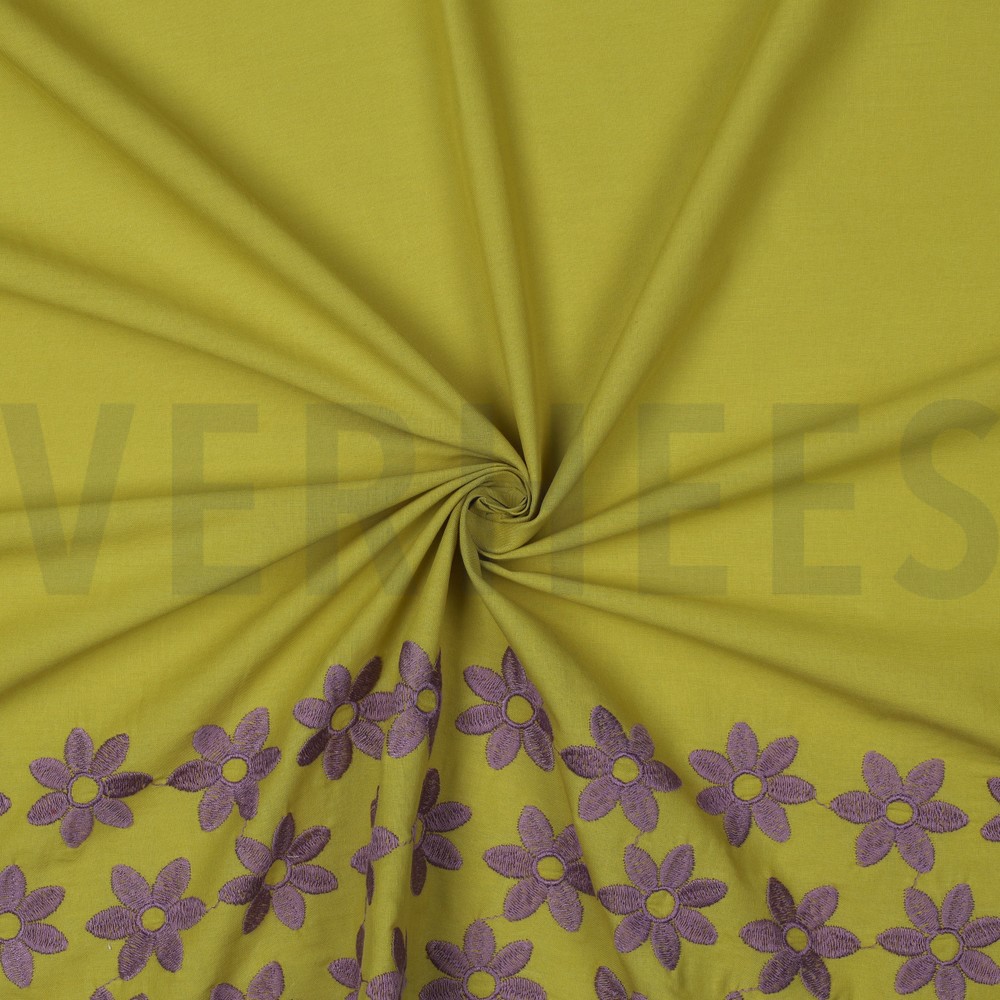 V03597.002 COTTON EMBROIDERY 1-SIDE BORDER GREEN / PURPLE - 100%CO