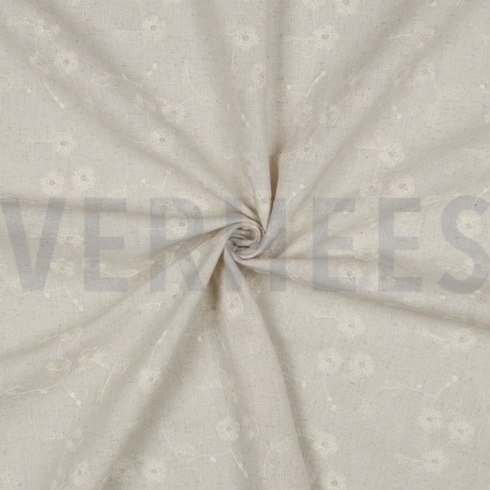 V03628.001 LINEN EMBROIDERY FLOWERS NATURAL - 70%VI/30%LI
