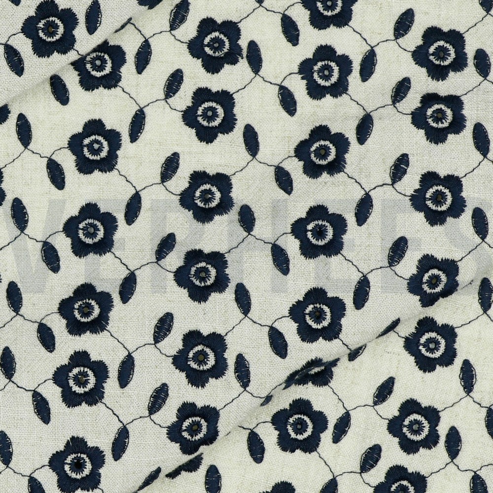 V03698.003 LINEN VISCOSE EMBROIDERY NAVY - 80%VI/20%LI
