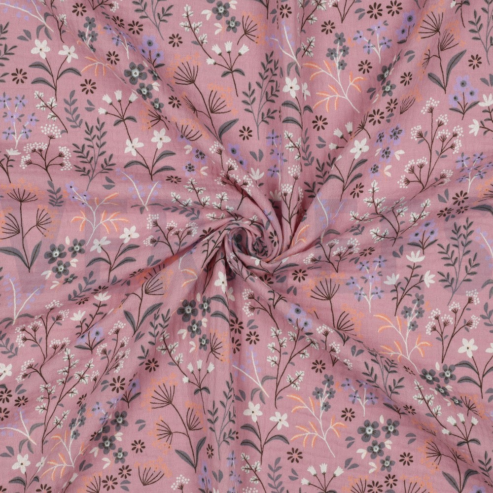 V04161.004 DOUBLE GAUZE GOTS FLOWERS MAUVE - 100%CO