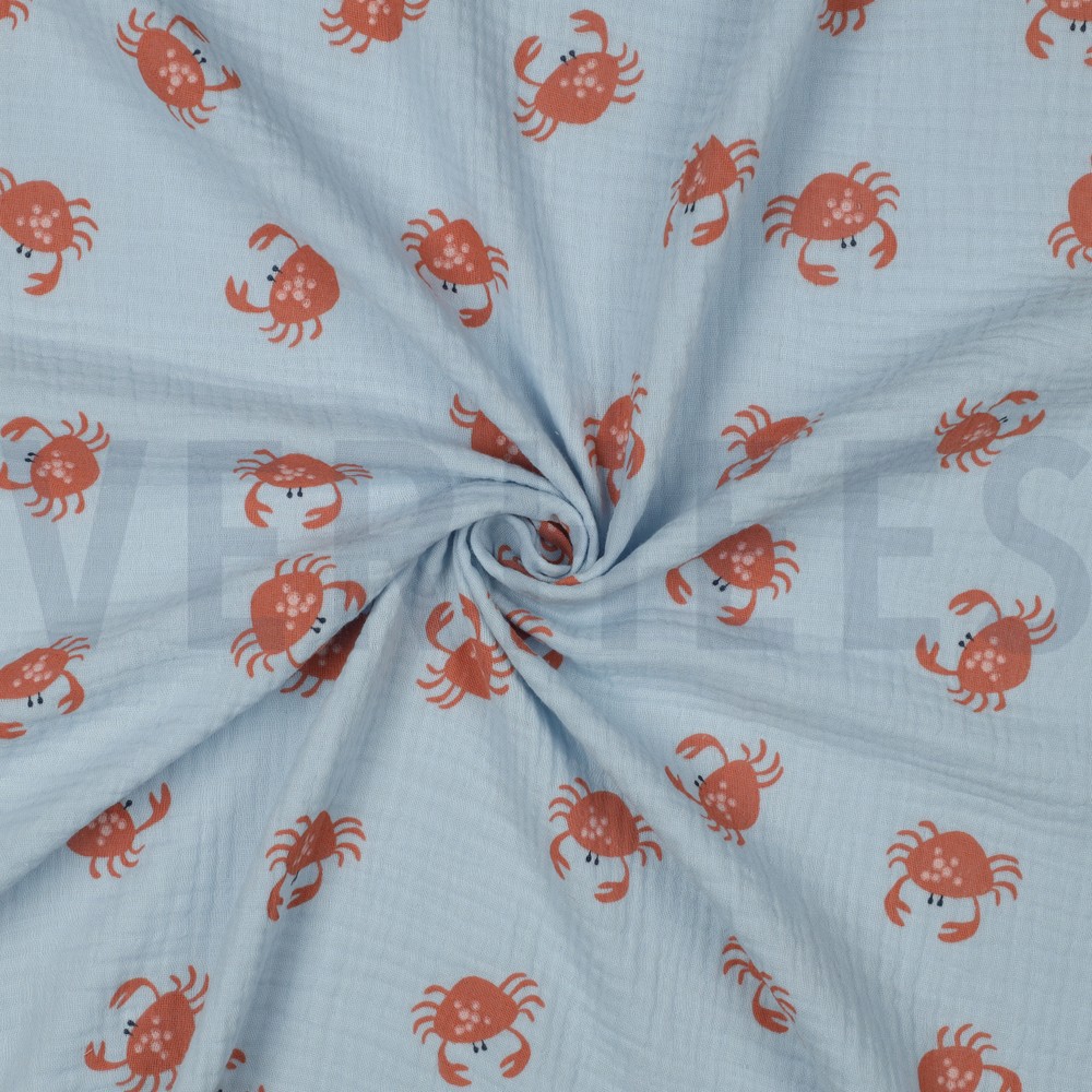 V04162.005 DOUBLE GAUZE GOTS CRABS LIGHT BLUE