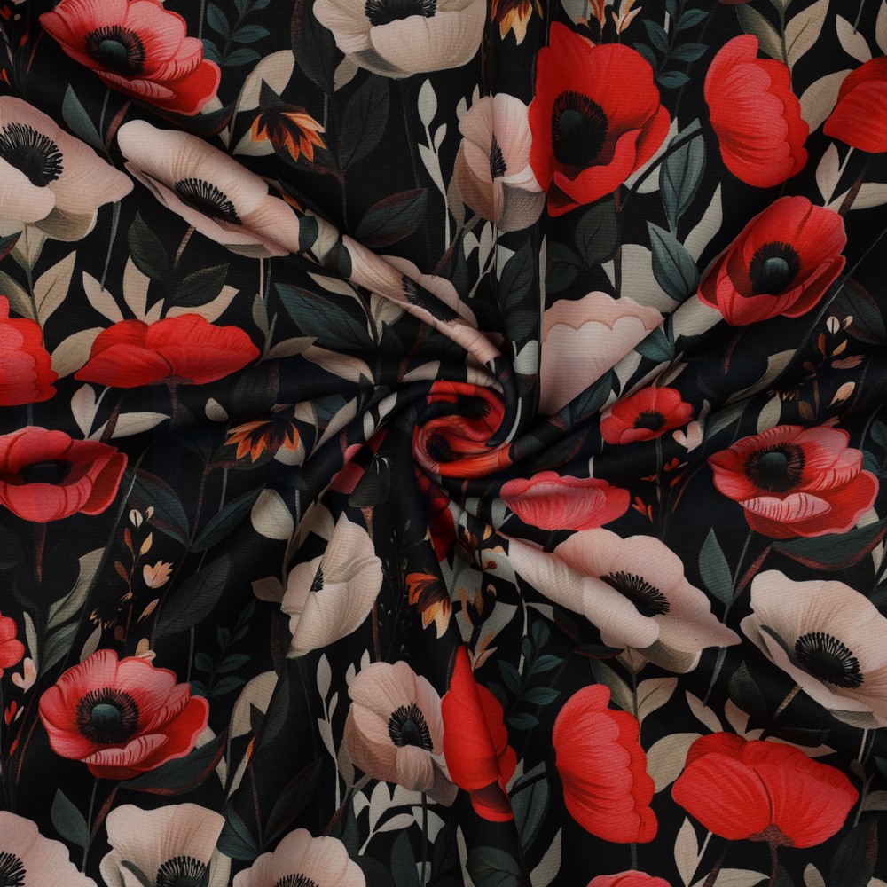 V04178.002 SOFTSHELL DIGITAL POPPIES BLACK - 95%PL/5%EA