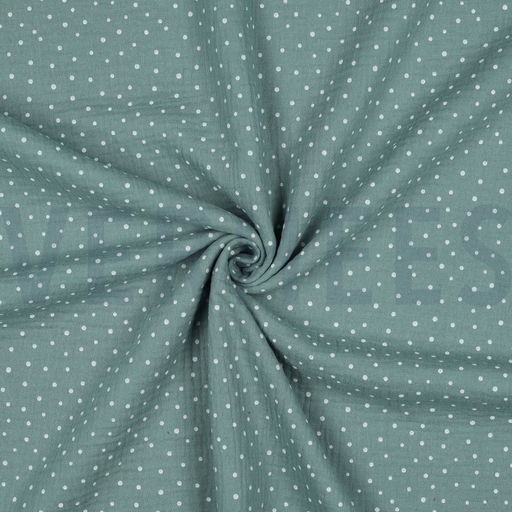 V04671.025 DOUBLE GAUZE LITTLE DOTS OLD GREEN - 100%CO