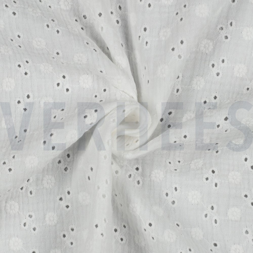 V04922.001 DOUBLE GAUZE EMBROIDERY FLOWERS WHITE