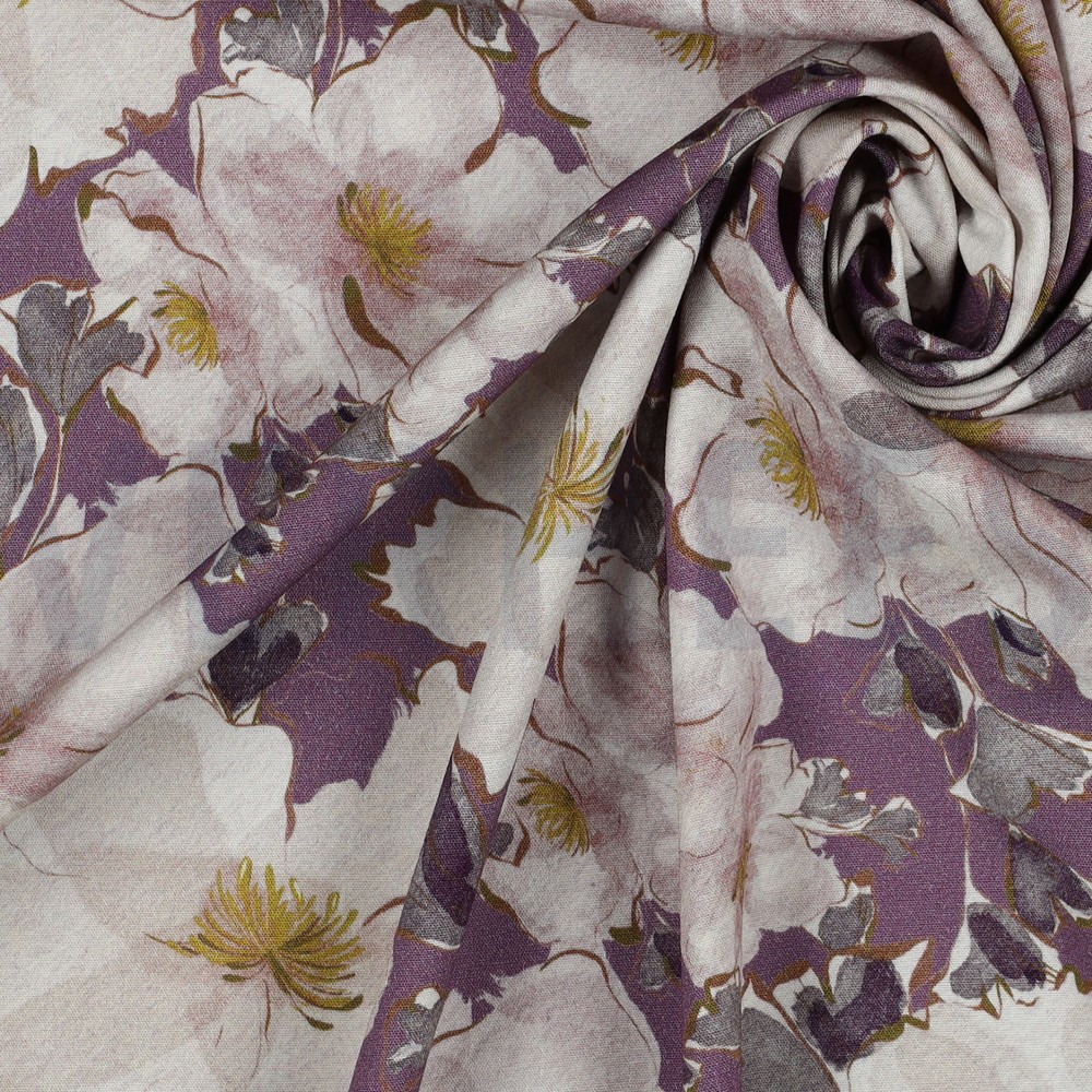 V05300.004 VISCOSE POPLIN STRETCH DIGITAL FLOWERS GRAPE