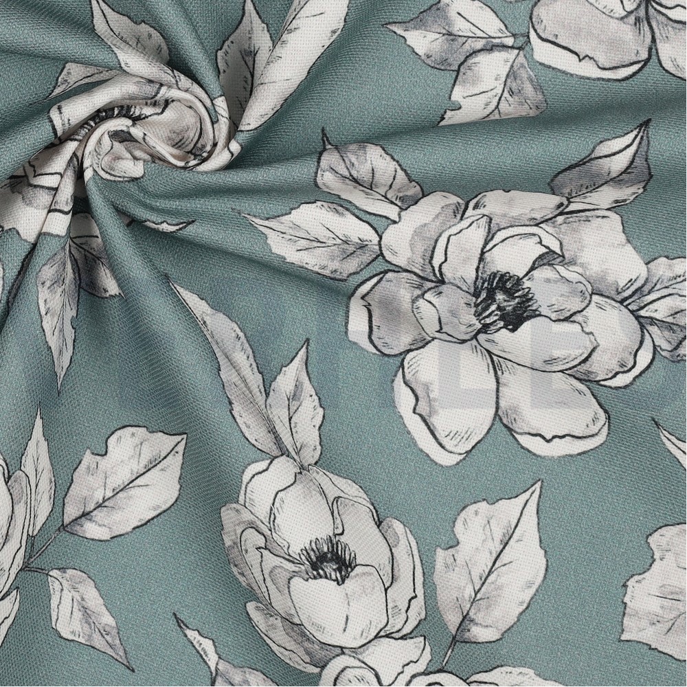 V05545.007 CANVAS DIGITAL FLOWERS - Imprimat Digital DARK MINT - 100%CO