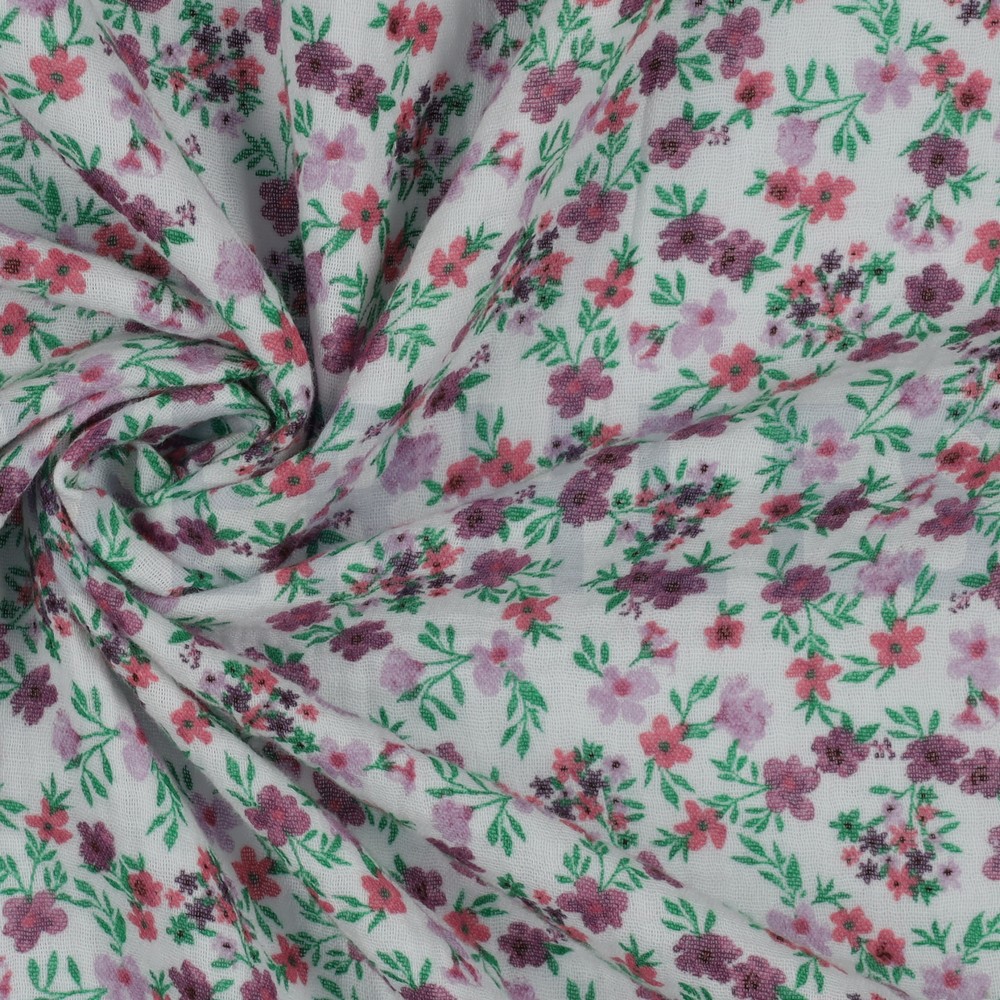 V05556.003 DOUBLE GAUZE GOTS DIGITAL FLOWERS WHITE / GRAPE - 100%CO