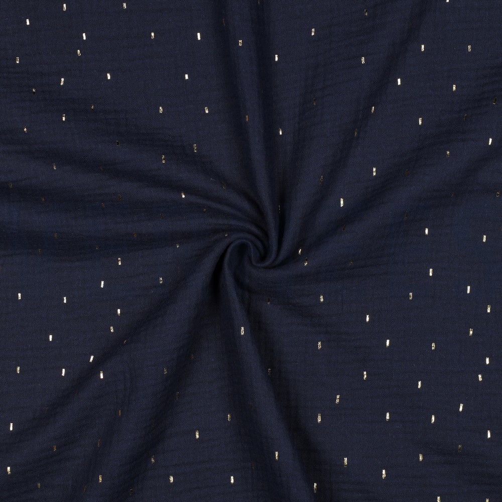 V07261.012 Muselina dubla cu sclipici- dungi V 125 gr NAVY/GOLD - 100%CO