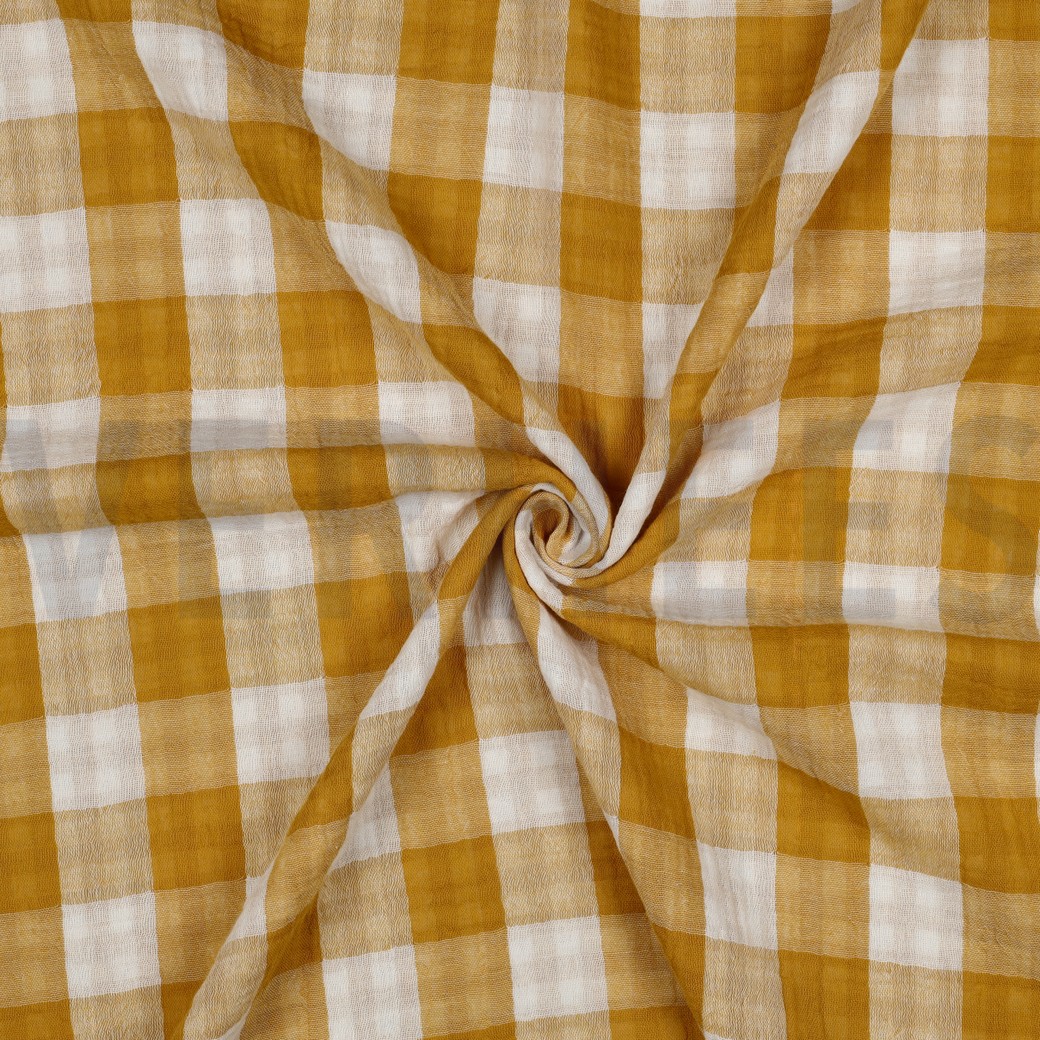 V09651.011 DOUBLE GAUZE DOUBLE SIDED CHECKS OCHRE