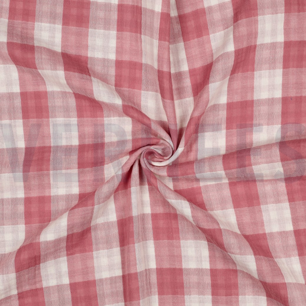 V09651.007 DOUBLE GAUZE DOUBLE SIDED CHECKS OLD ROSE