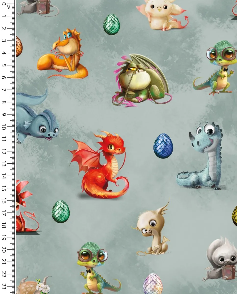 M5566-126 Jersey Digital Toff Cute Dragons Dark Old Green - 95%CO 5%EA