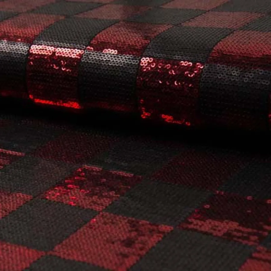 QCT0132-015 Spangles Check Red - 100% PE