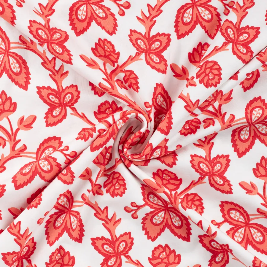 QK10335-140 cotton / ea jersey print Flowers Coral