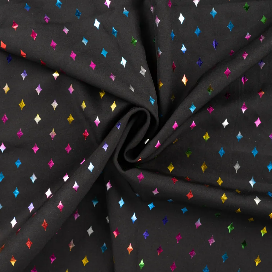 QK65023-690 soft shell foil print diamonds black multi foil