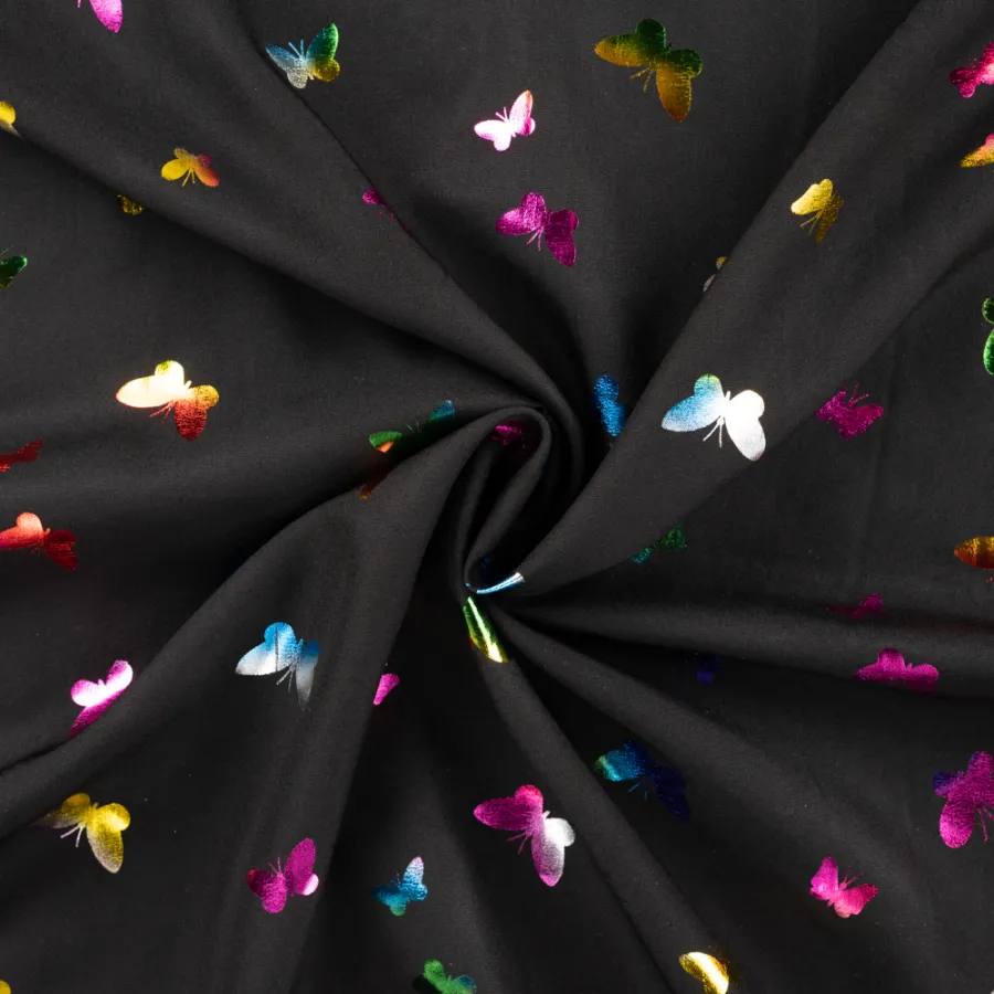 QK65024-690 soft shell foil print butterflies black multi foil - 99% PE,1% SP